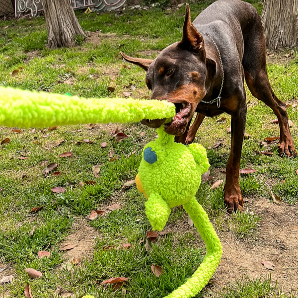 Este é um brinquedo muito interativo: os braços ajustáveis de 80 cm de comprimento permitem que os cães se divirtam puxando; diferentes sons são emitidos na cabeça e nos braços, adicionando diversão ilimitada. Se quiser, também pode virar um lenço, que é um ótimo adereço fotográfico!