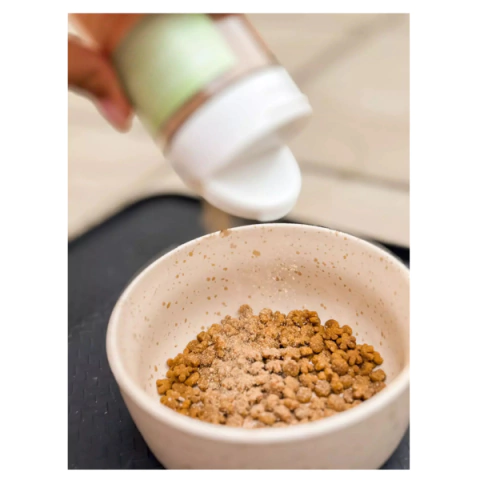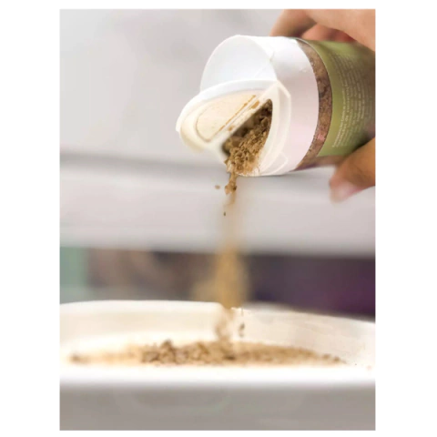 Como usar: polvilhe e misture o produto com o alimento pet ou em objetos para atividades de enriquecimento ambiental, seguindo o quia alimentar.